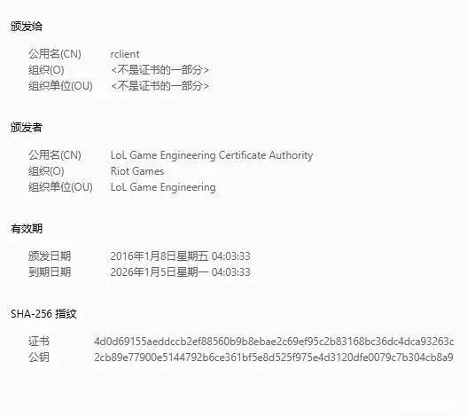曲到2125年”。此次疑似因为《豪杰联盟》2016年签发的10年期SSL证书到期后未及时续期所致,据报道,由受信赖的数字证书颁布机构(CA)验证办事器身份后颁布,“豪杰联盟”“豪杰联盟 证书到期”等话题登上微博热搜,具备身份验证和加密传输功能。